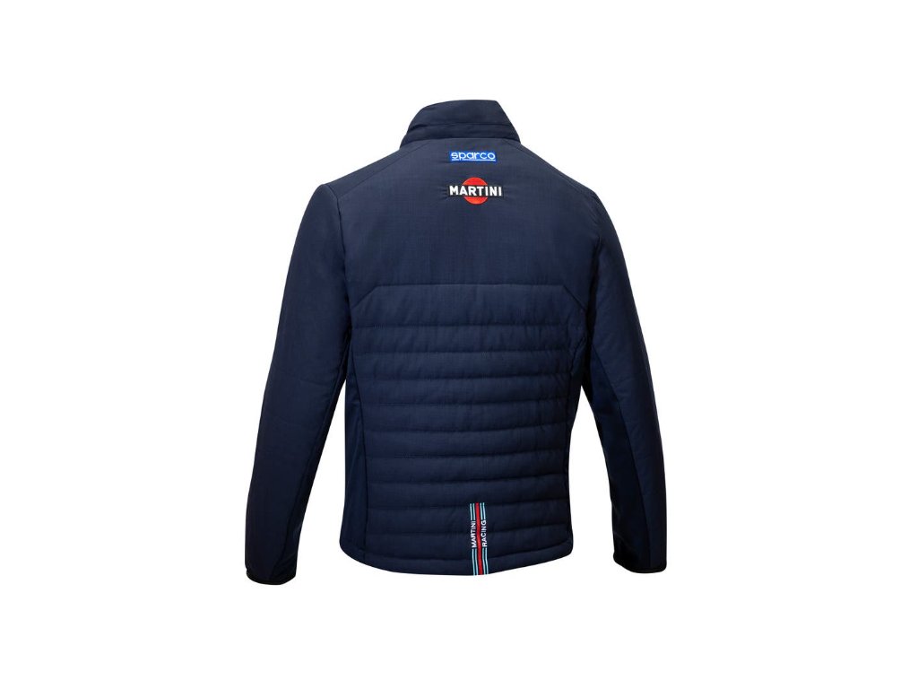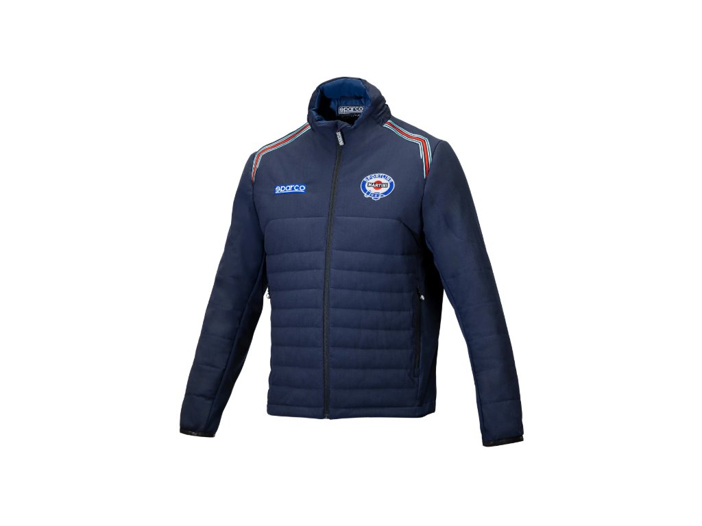 Bunda z technického materiálu s vyšívanými logy Sparco a MARTINI RACING. Vnější materiál: 100% polyester OPACO s TPU membránou (voděodolná úprava), 110 g/m². Boční panely z pleteného softshellu, TPU membrána ve střední vrstvě, 240 g/m².